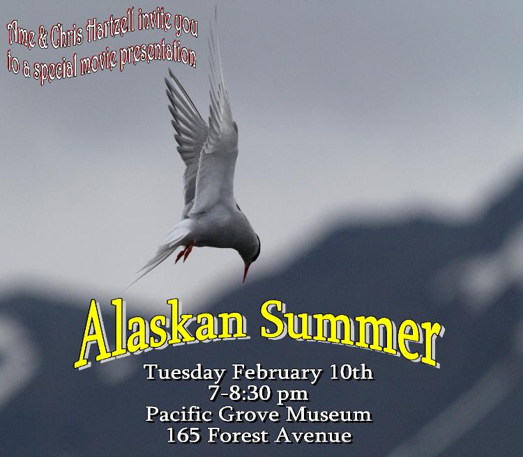| There is no better place to see roaming wildlife and breeding plumaged birds against the backdrop of high snow-capped peaks, than in the Tundra of Alaska. In June 2008, Ame and I traveled to Alaska for 3 weeks of wilderness touring. Covering thousands of miles by land, sea, and air, we explored all the flowers, wildlife, and birds we could find in no less than a dozen different places. 2 weeks making a giant loop through the interior, then 3 days at the Arctic Circle, we finished our trip with a 1 week cruise of the Inside Passage to Vancouver. Join us as we show a "theater-style" 45 minute movie of our trip as well as share our research, challenges, itinerary, and travel recommendations to this beautiful land. |